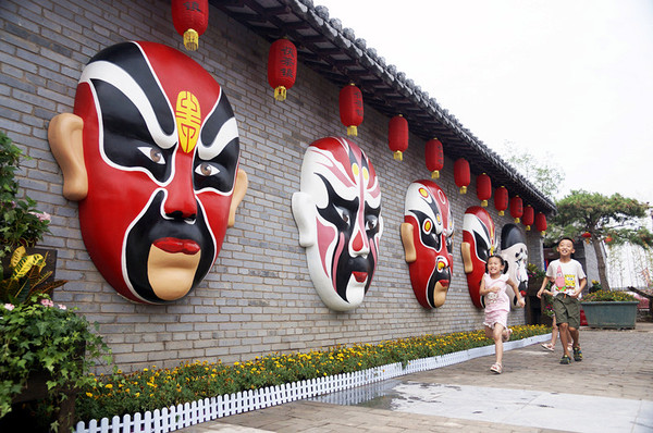 陕西特色小镇无处不在的戏剧雕塑很好的突出"百戏之源"这四个字的涵义。