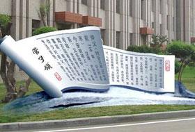 校园雕塑,这种物化了的精神载体,它集中反映了学校这个特定群体的道德价值和审美取向,是进行道德教育、审美教育的最好素材之一。