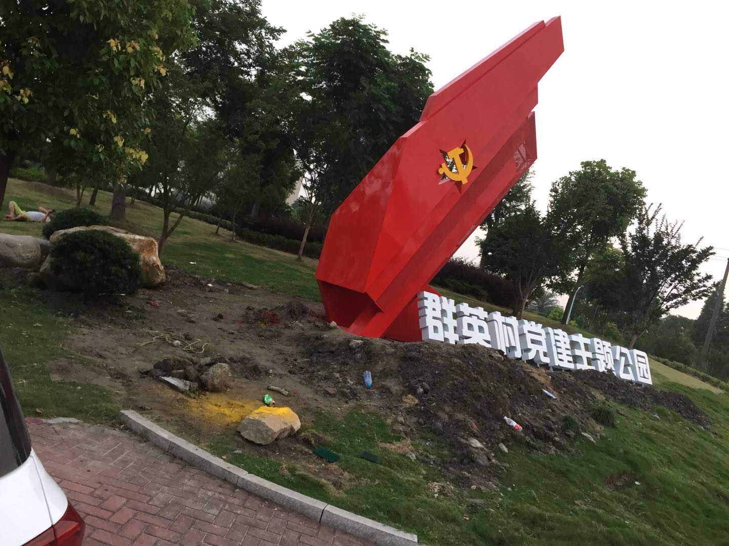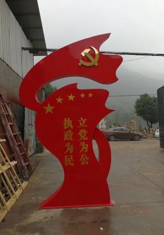 用不锈钢做成的党十九大主题“不忘初心,牢记使命”雕塑