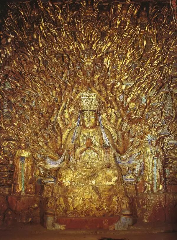况且整个宝顶山摩崖造像群,乃至整个大足石刻都是一个整体。如果此尊千手观音修复得焕然一新,那么石窟的其它部分怎么办?其它大足石刻造像又怎么办?是不是都要修成金光灿灿的样子?如果整个大足石刻都金光灿灿,能够想象将会是什么样子吗?